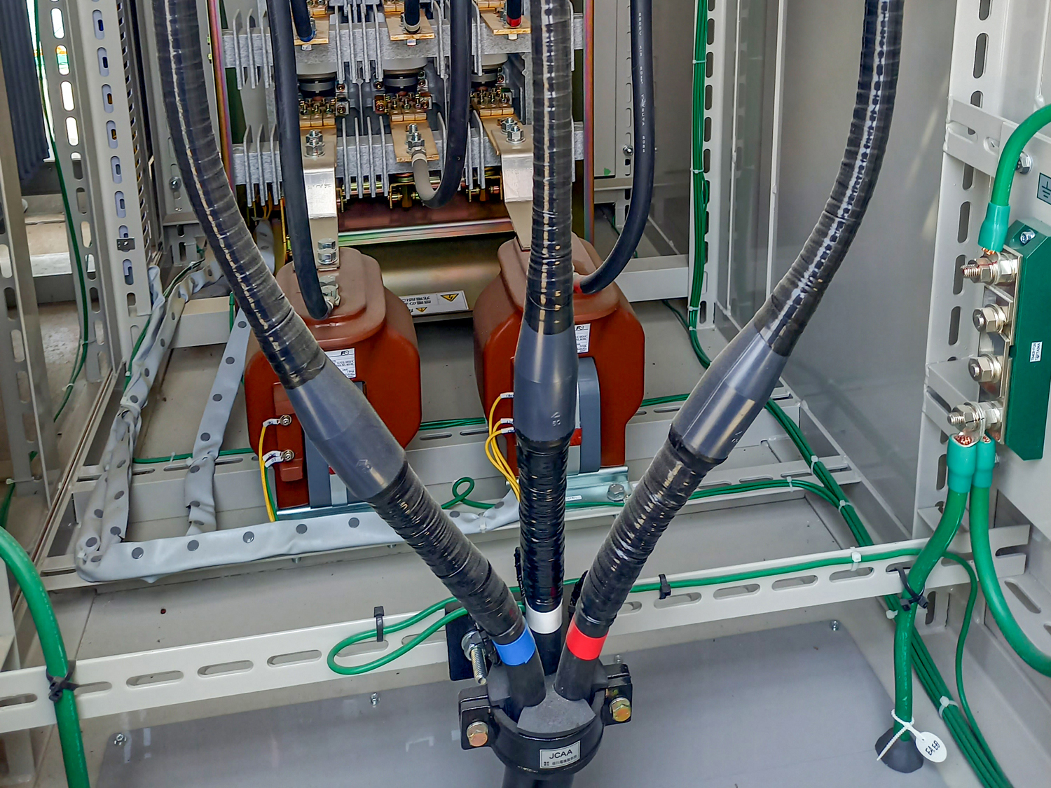 工場や商業施設、オフィスビルなどの高圧・低圧ケーブル配線工事を行っています。